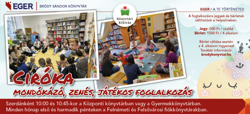 Helyszín: Gyermekkönyvtár (Eger, Bartók Béla tér 6.) / Központi Könyvtár (Eger, Kossuth Lajos utca 16.)